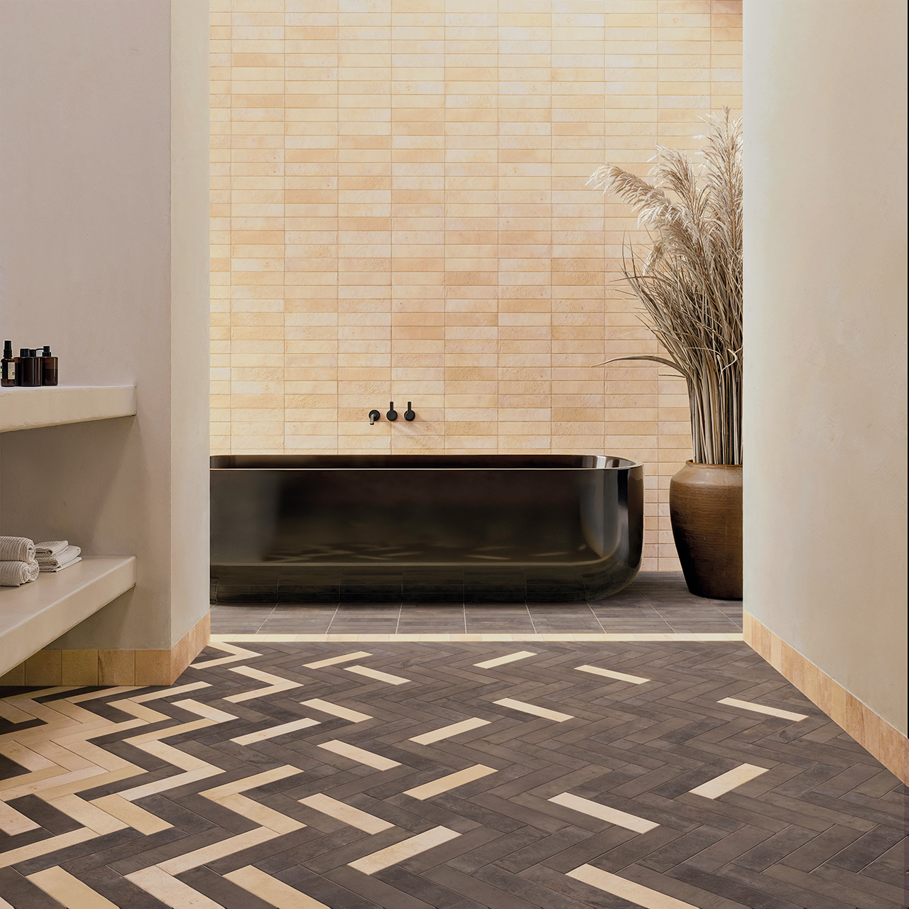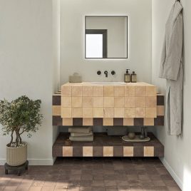 Its clay textures carry the imprint of craftsmanship, evoking tradition and memory. Its crystalline textures echo the brilliance of minerals, allowing us to combine clay and color. That is the contrast we seek in Terre, the art of combining to create inspiring environments. A collection that blends just as geological layers do.